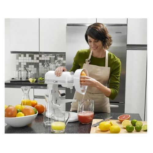 El Aditamento Exprimidor de Citricos KitchenAid te ayudará a sacarle el jugo a todas las frutas de este tipo; Prepara de forma rápida y fácil un rico jugo de naranja, limón, lima o toronja. Su colador incorporado, separa las semillas y la pulpa.