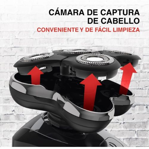 ncluye: afeitadora, protector de cabezal, cable de carga USB-c, cepillo de limpieza, estuche de almacenamiento. 5 cabezales de corte Corta patillas plegable Tecnología ConstantContour Cuchillas Dual Track 100% resistente al agua Hasta 50 minutos de uso continuo Carga USB-c Uso universal