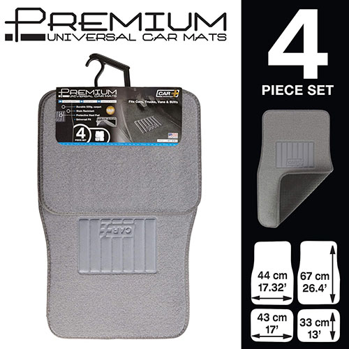 Alfombra perforada con almohadilla protectora para el talón para garantizar que su alfombra dure muchos años – Parte trasera con puntas resistentes para mantener las alfombrillas en su lugar de forma segura – Forma universal para adaptarse a la mayoría de automóviles, camionetas, SUV y furgonetas – Resistente a las manchas, fácil de limpiar, 100% lavable. Juego de 4.