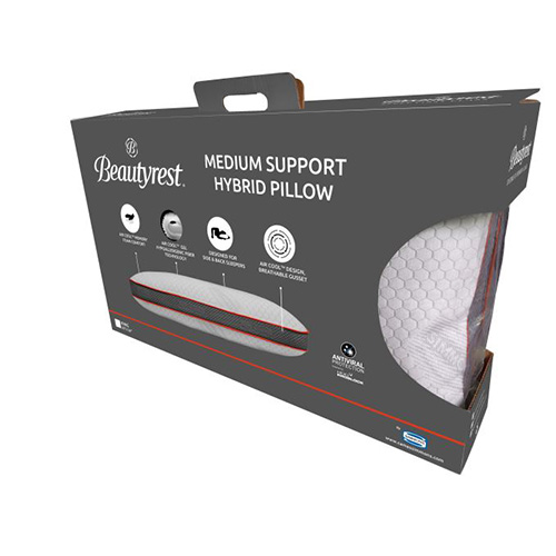 Almohada Simmons Medium con núcleo de Memory Foam y Fiber Tecnology en el interior, su tecnología Air Cool le ayuda a respirar al dormir. Confort medio – Núcleo de espuma Air Cool de alta densidad – Tecnología de fibra de gel – Diseñado para durmientes laterales y sobre la espalda – Refuerzo transpirable de diseño AirCool.
