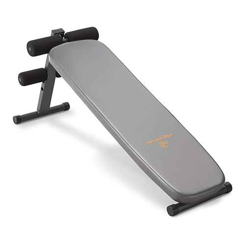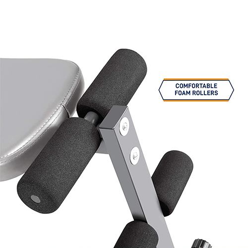 Banco inclinado fijo para fuerza abdominal y central; posición fija: ángulo de 20 grados para un entrenamiento de core desafiante. Almohadilla para la espalda extra larga: para atraer tanto a usuarios altos como bajos. Rodillos de tobillo ajustables: tres alturas para diferentes longitudes de pierna. Patas antideslizantes.