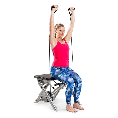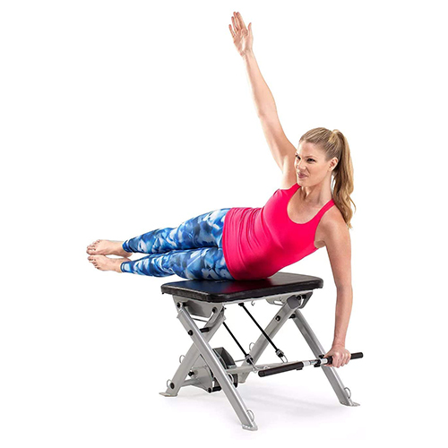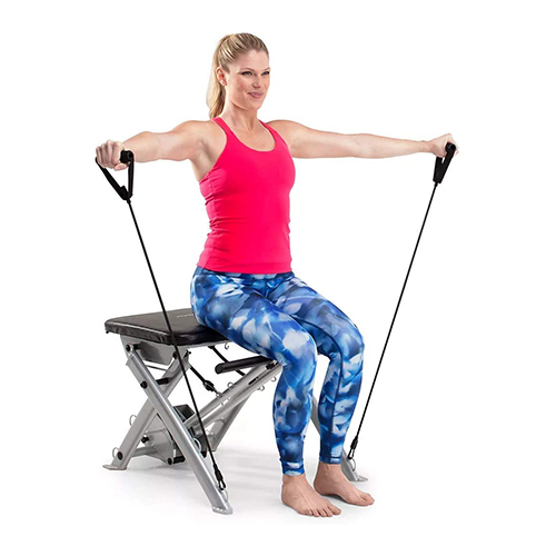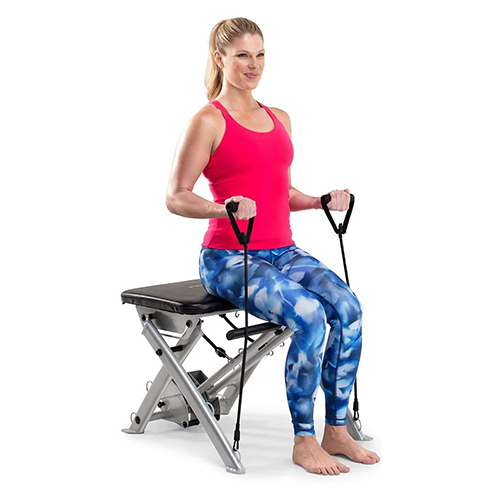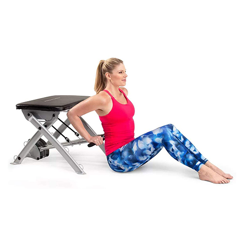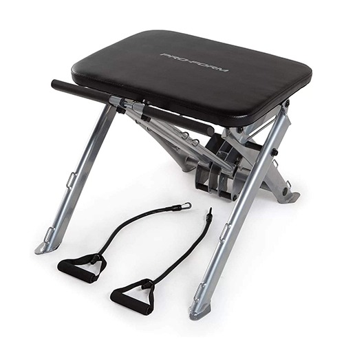Banca ProForm para pilates; entrena todo tu cuerpo desde la comodidad de tu sala de estar con la silla ProForm Pilates. Diseñada para ofrecer un entrenamiento de cuerpo completo, esta silla de ejercicios compacta le permite fortalecer y tonificar la parte superior e inferior de su cuerpo con una variedad de accesorios de resistencia. Entrene usando su propio peso corporal o agregue resistencia adicional con bandas progresivas que se incluyen en su compra. Después de cada entrenamiento, la silla ProForm Pilates se puede plegar sobre sí misma para un almacenamiento compacto que cabe fácilmente debajo de su cama o en un armario.