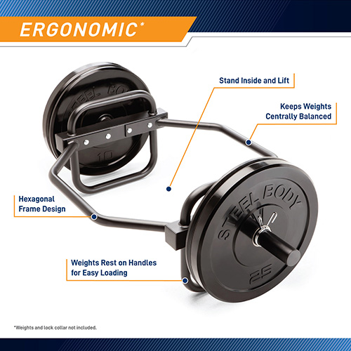 La barra Marcy Olympic Hex Trap Bar / Shrug Bar con asas elevadas – HTB-6976 es perfecta para peso muerto, encogimiento de hombros, Farmers Walk / Farmers Carry y tracción. El marco hexagonal es un diseño clásico preferido por muchos que usan barras trampa. La forma única ayuda a mantener los pesos centralmente equilibrados. Las manijas de altura de tracción estándar brindan un amplio espacio para ajustar su agarre. Cuando se utilizan las manijas de altura de tracción estándar, las manijas de altura elevada facilitan la carga y descarga de placas de peso. Si gira la barra, puede usar las manijas de altura elevada en su lugar. El HTB-6976 pesa 30 libras, es compatible con placas olímpicas de 2” de diámetro y tiene una manga olímpica de 8” de largo. El peso total máximo para esta barra de encogimiento de hombros es de 800 libras. Use los clips de resorte olímpico incluidos para asegurarse de que sus pesas estén aseguradas cuando esté en uso.