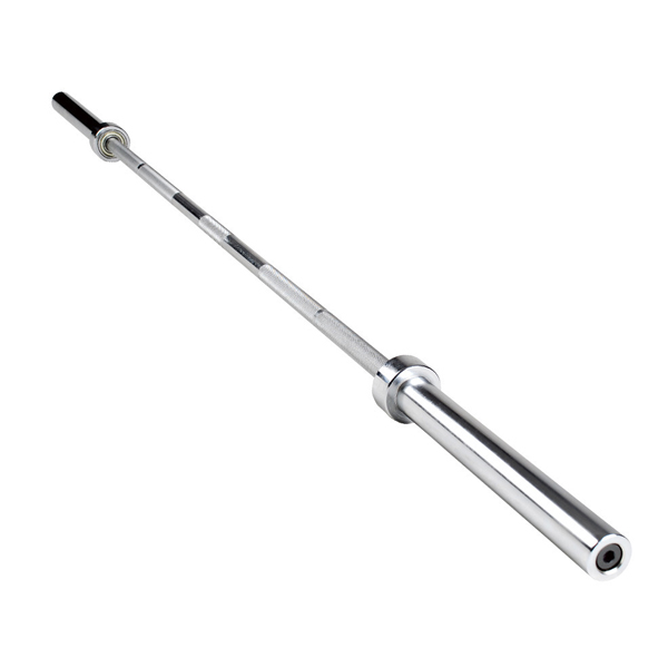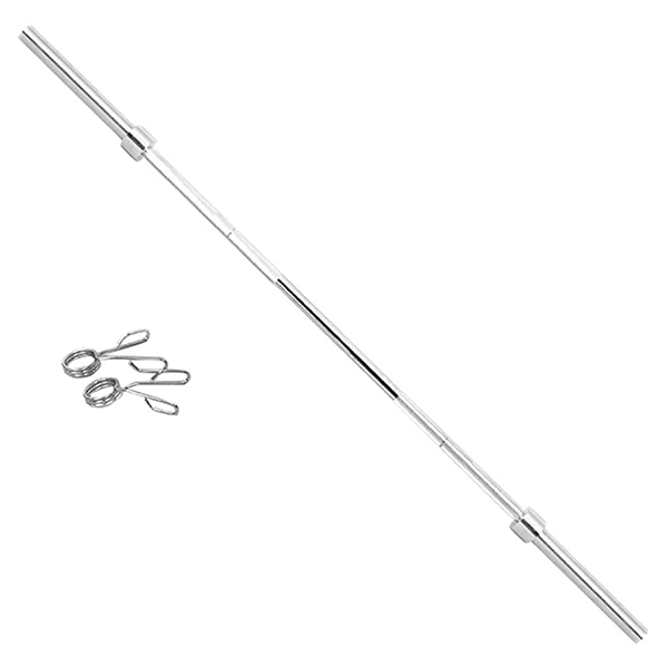 Barra olímpica de acero de 86″ con acabado de chapado en cromo. Incluye par de collarines de resorte. Diámetro interno de 28mm. Compatible con agujero 2″ para discos olímpicos. Adecuado para usar en levantamiento olímpico, levantamiento de pesas y otros regímenes de ejercicio. No adecuado para uso con platos de rebote (bumper plates) ya que no debe soltarse y dejar caer con fuerza al piso.