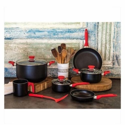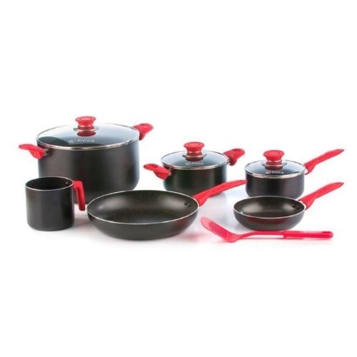 Picca Batería de Cocina Lazio de 10 Piezas, Negro con Rojo