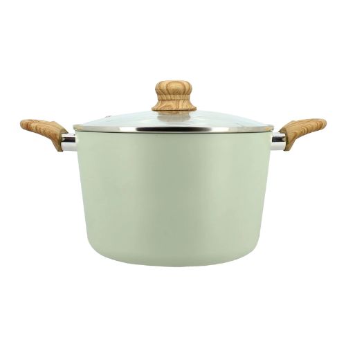 Está equipado con un revestimiento antiadherente de cerámica. Esto tiene la ventaja de hacer más fácil la cocción y evitar que las preparaciones se peguen a la superficie de la olla. Además, para una cocción más saludable, el revestimiento antiadherente permite cocinar utilizando menos grasa. Su diseño garantiza ligereza, robustez y facilidad de uso. Sus mangos ergonómicos de baquelita te proporcionarán un agarre bueno y seguro en un acabado efecto madera.