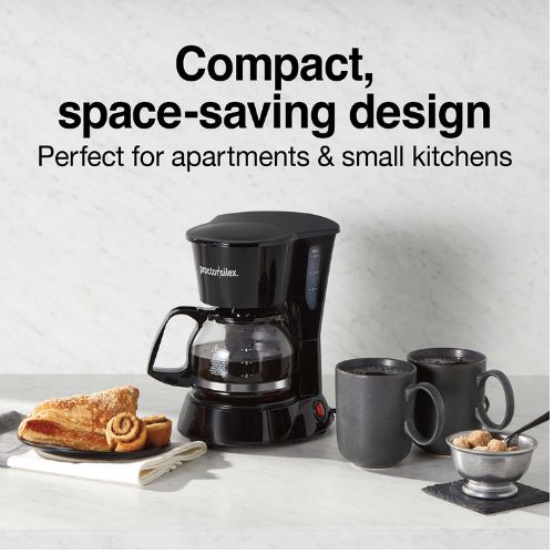 Fácil de usar: solo agregue café, agua y prepare. Perfecto para apartamentos pequeños y cocinas con un diseño compacto que ahorra espacio. Vea fácilmente si la cafetera está encendida o apagada Obtenga su primera taza rápidamente con la función Pausa y vertido automático Compatible con enchufes inteligentes Durable y fácil de limpiar. Fácil de llenar con la ventana de nivel de agua de fácil visualización