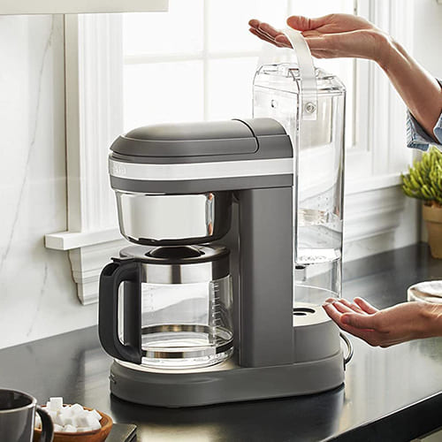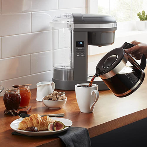 Prepara delicioso café de goteo, cada vez. Esta cafetera de 12 tazas, con cabezal de ducha en espiral, te permite preparar un delicioso café cada vez. Satura uniformemente los posos de café para una extracción óptima, produciendo una taza de café excepcionalmente sabrosa. Además, esta cafetera también cuenta con un selector de fuerza de cerveza variable para elegir entre fortalezas regulares y audaces, programabilidad 24 horas, por lo que tu café puede estar listo en cualquier momento, día o noche, y una función de pausa y verter para verter una taza de café antes de que se complete la preparación.