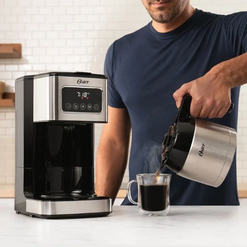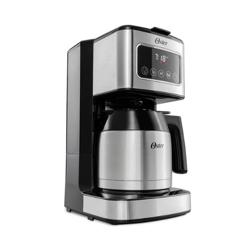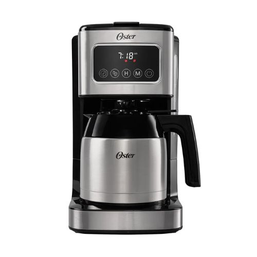 La Cafetera programable de 8 tazas con pantalla táctil de Oster® es un complemento elegante para cualquier cocina. Su jarra térmica te permite mantener el café caliente hasta por 2 horas. Disfruta de la óptima funcionalidad para elegir la hora de preparación y qué tipo de café deseas, simplemente tocando la pantalla táctil. Incluye una cuchara medidora para facilitar la adición de la cantidad correcta de granos de café y también un filtro reutilizable para mayor ahorro y menos desperdicios. Pantalla táctil que proporciona facilidad de uso Filtro de café reutilizable para un mayor ahorro y menos desperdicio Preparación programable para configurar tu café para la hora más conveniente Selector de intensidad para un café más intenso La función de Pausa para Servir te permite parar el proceso para disfrutar de una taza de café durante la preparación