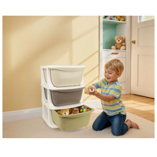 Los tres compartimentos proporcionan suficiente espacio para organizar juguetes de diferentes tamaños. Fácil de montar, lo que lo hace cómodo para los padres. Los bordes lisos evitan cualquier riesgo de lesiones y el diseño liviano permite un fácil reposicionamiento.Esta cómoda no solo ayuda a mantener limpia el área de juegos, sino que también enseña a los niños la importancia de la organización desde una edad temprana.