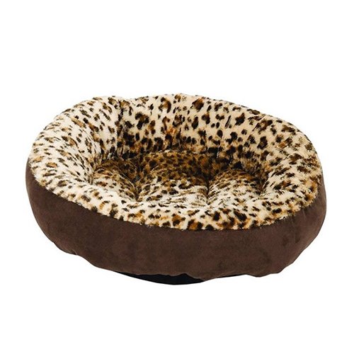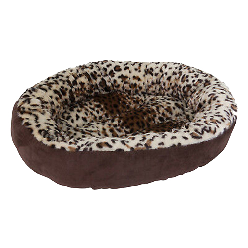 Relleno con relleno de fibra de poliéster reciclado de alto loft; Lavable a máquina para un fácil cuidado. Rodea a tu mascota de suavidad. Diseño animal print marrón y blanco. Los lados elevados ayudan a promover el instinto de anidación y reducen la exposición a corrientes de aire 18 x 18.