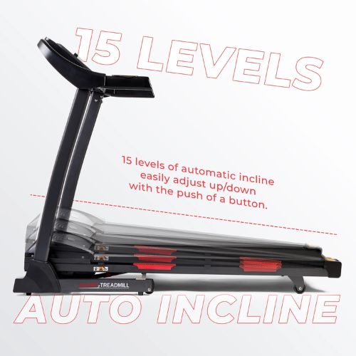 Esta caminadora alcanza velocidades de hasta 14.5 km/h y cuenta con botones de velocidad rápida. Cuenta con 15 niveles de inclinación motorizada y con ajuste en botones de inclinación para los niveles 3, 6 y 12. El monitor digital muestra métricas esenciales como tiempo, inclinación, velocidad, distancia, pulso, calorias y pasos. Cuenta con un mecanisco hidráulico de caída suave y fácil de usar, lo que facilita plegarla y desplegarla de forma segura con prácticas ruedas de transporte. Esta caminadora es silenciosa. Utiliza las empuñaderas de fácil acceso mientras haces ejercicios para monitorizar tu frecuencia cardíaca en tiempo real.