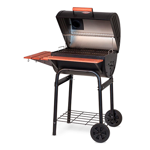 El tamaño más pequeño no significa menos funciones. El Wrangler® viene completamente equipado con una rejilla para calentar, rejillas de cocción de hierro fundido, un estante lateral y frontal, así como un cenicero Easy Dump ™ y una rejilla de fuego ajustable. Hecho de acero resistente y con caja de fuego lateral adaptable, esta parrilla con capacidad para 18 hamburguesas tiene un gran impacto.