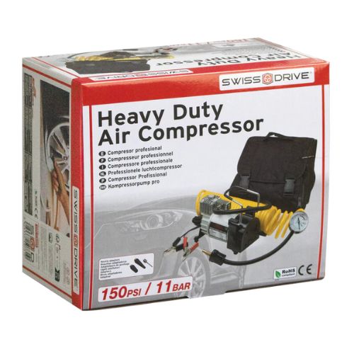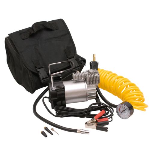 Presión de aire robusta: proporciona hasta 150 PSI/11 BAR, ideal para trabajos de inflado de alta presión. Motor de servicio pesado: el sistema de 12 V/200 W admite una salida potente con un consumo máximo de 30 amperios. Conectividad versátil: se conecta directamente a la batería de su automóvil con pinzas de cocodrilo incluidas para un suministro de energía confiable. Manguera flexible y duradera: viene con una manguera de aire enrollada de 3 metros para un mayor alcance y facilidad de uso. Manómetro analógico incorporado: Manómetro fácil de leer para un control de inflado preciso. incluye un juego de adaptadores de boquilla de 4 piezas para inflar neumáticos, colchones de aire, pelotas, bicicletas y más. Compacto y portátil: viene con una bolsa de transporte resistente (23,5 × 18 × 21,5 cm) para facilitar el almacenamiento y el transporte.