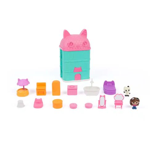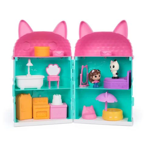 La Casa de Muñecas de Gabby – Llevá la diversión de Gabby’s Dollhouse a todas partes con la Mini Play House plegable. Este set incluye 9 accesorios para decorar los tres pisos de la casa y 2 mini figuras que permiten recrear las escenas más emocionantes de la serie, ¡donde quieras! Compacta y fácil de transportar, esta mini casa es perfecta para que los pequeños jueguen tanto en casa como de viaje. Además, al abrirla, se despliegan infinitas posibilidades de juego creativo y aventuras sin fin.