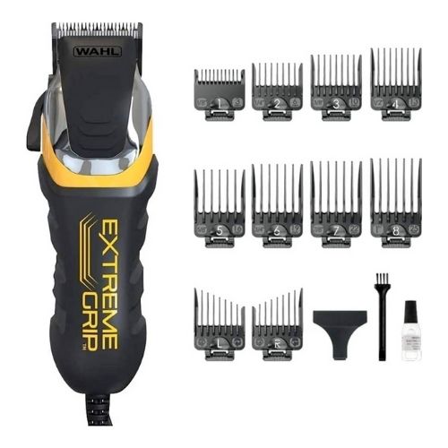 La cortadora de cabello Extreme Grip Pro está equipada con 12 protecciones, permitiéndote elegir la longitud perfecta para patillas y bordes, mientras que sus cuchillas de precisión autoafilables aseguran cortes limpios y ordenados. Esta cortadora con cable incluye un total de 19 piezas: 10 peines de guía (3, 6, 10, 13, 16, 19, 22, 25 mm), guía izquierda de orejas, guía derecha de orejas, cubierta de cuchilla, tijeras, peine de barbero, peine de peluquería, cepillo para barba, estuche duradero, aceite y cepillo de limpieza.