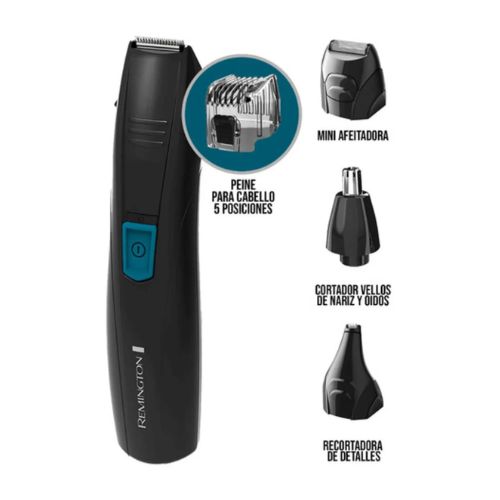 La recortadora remington 5 en 1 es la herramienta ideal para recortar, detallar y rasurar. Este modelo compacto, con cuchillas de acero inoxidable autoafilables, funciona con dos pilas aa para que no dependas de un cargador externo en tus viajes. Consta de 5 cabezales versátiles para conseguir look y cubrir todas tus necesidades de corte y afeitado facial, cortador de precisión, mini afeitadora, peine con 5 ajustes de largo para cortar la barba, cortador para detalles, cortador de vellos para nariz y oídos. Cabezales y peine lavables.