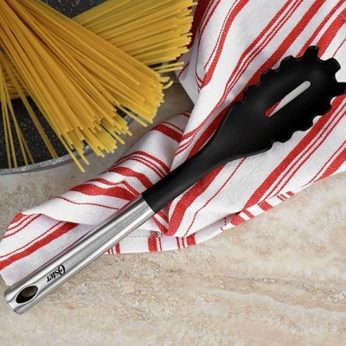 El Oster Spaghetti Server tiene una cabeza de nailon resistente al calor que agarra y recoge cualquier tipo de pasta o fideos. Es seguro de usar en utensilios de cocina antiadherentes o cualquier acabado delicado sin raspar ni rayar. Funciona bien en superficies cerámicas o antiadherentes convencionales e interiores pre-sazonados y esmaltados. El mango de acero inoxidable ofrece un agarre robusto y ergonómico al dividir o servir pasta. Apto para lavavajillas.