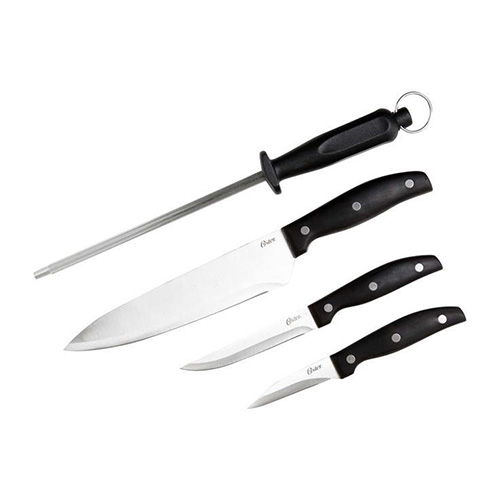 Construcción estampada con precisión para mayor durabilidad en toda la longitud del cuchillo. Cuchillas de espiga completa para un excelente equilibrio. Cuchillas de acero inoxidable de alta calidad resistentes a las manchas y al óxido. Incluye: 1 cuchillo de chef de 8 pulgadas; 1 afilador; 1 cuchillo multiusos de 5 pulgadas y 1 cuchillo para pelar de 3 pulgadas de 1,2 mm.