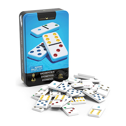 Toda la familia puede disfrutar de uno de los juegos más populares del mundo con este juego de dominos de doble seis puntos de color. Los jugadores colocan sus Dominoes para que los números coincidan a medida que van en carrera para deshacerse de todas sus piezas. El clásico dominó de 6 que todos conocen, sus fichas son resistentes y duraderas. Vienen dentro de una caja de aluminio para fácil transporte y almacenaje.