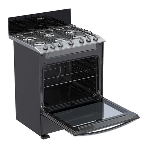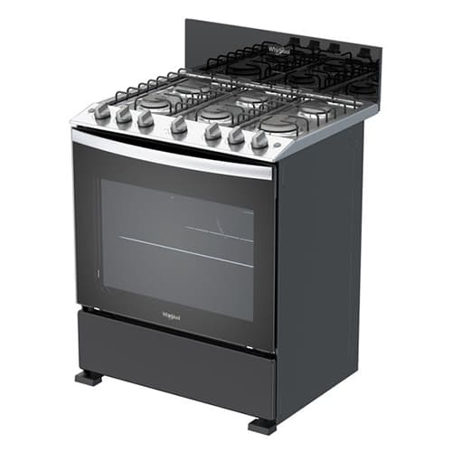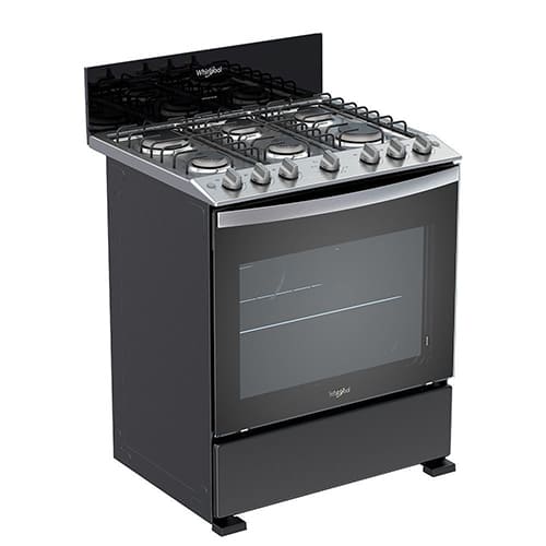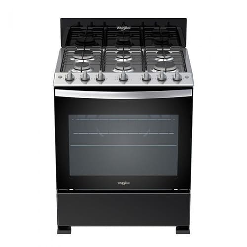 Estufa a gas de 6 quemadores con horno Whirlpool, modelo LWFR3100B. Con tamaño de 30″, esta estufa está diseñada con tablero de acero inoxidable y un acabado en color negro, posee quemadores estándar con encendido electrónico y rejilla de hierro fundido. Cuenta con ventana en el horno y 1 parrilla para preparar los más deliciosos platillos. Su horno cuenta con una puerta panorámica con Door Stop System para un cerrado suave y tecnología EverClean para una limpieza fácil.