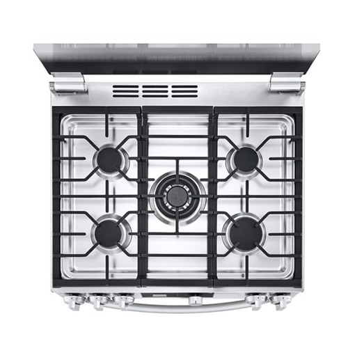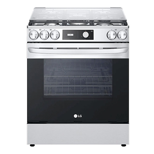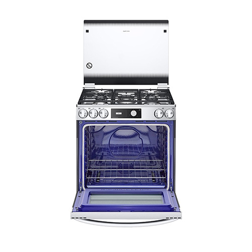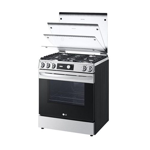 Cocina rápido con el quemador Triple Flama UltraHeat™: Aplica uniformemente mayor potencia en la parte inferior de tus utensilios de cocción. Gracias a sus 5 quemadores con gran espacio podrás colocar sartenes grandes en la estufa al mismo tiempo. Cuidate, limpia sin químicos: Gracias a su recubrimiento especial de esmalte hidrofílico puede eliminarse fácilmente cualquier residuo con solo agua. Sólo rocíe el interior de su horno con agua, pulse el botón para activar la función EasyClean 20 minutos y límpie cualquier residuo. “Los hornos de las nuevas estufas de gas LG son más fácil de limpiar”. Sin peligro de incendio: ¿Alguna vez te preocupaste por una fuga de gas en el interior del horno? El Bloqueo Automático de Gas, detiene el suministro de gas si la flama se apaga mientras esta cocinando. Sin peligro de incendio y quemaduras. Fácil de Encender con una sola mano: Las Nuevas Estufas LG te permiten encender tu estufa de forma práctica y conveniente sin necesidad de presionar un botón de encendido, simplemente gira la perilla al usar la estufa. No es necesario agacharse o utilizar un encendedor para encender el horno. No te preocupes más del encendido repentino o quemaduras indeseadas. Diseño seguro y con estilo: El sistema de Cierre suave previene que la cubierta de vidrio se cierre repentinamente, evitando el riesgo de ruptura. Gran capacidad para cualquier tamaño de comida (El más grande en el mercado: 5,8 pies cúbicos) LG le ofrece la mayor capacidad de la industria para darle la flexibilidad de cocinar alimentos más grandes, tales como pizza o pavo para consentir a su familia.