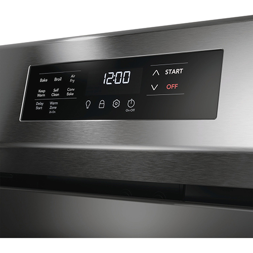 Horneado por convección: Obtenga resultados de horneado más rápidos y uniformes con nuestro sistema de horneado por convección con ventilador. Estufa de cinco elementos: Diseñado para satisfacer todas sus necesidades de cocina con un potente elemento EvenTemp® de 3200 vatios, un elemento expandible doble y una conveniente zona para mantener caliente. Horno autolimpiante: Cuenta con un conveniente ciclo de autolimpieza de 3 horas que reduce la necesidad de fregar, lo que facilita mantener limpio el horno. Elemento EvenTemp®: El calor se distribuye uniformemente por la superficie del elemento, lo que reduce los puntos calientes y las áreas frías en la sartén.