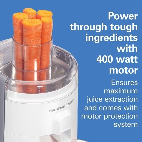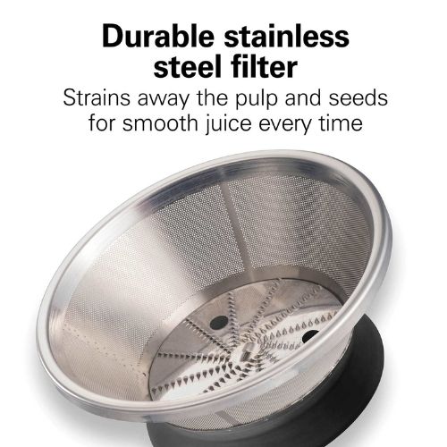 Con el extractor de jugos compacto HealthSmart®, podrá preparar jugos nutritivos y sabrosos en solo unos minutos. Prepara jugos frescos y saludables en segundos y su gran tolva reduce el corte previo en un 50 % para ahorrarle tiempo y esfuerzo de preparación. Su diseño compacto ocupa un espacio mínimo en la mesada, pero tiene toda la potencia que necesita para exprimir los ingredientes más duros. Puede exprimir de manera rápida y sencilla todo tipo de alimentos, desde zanahorias y manzanas hasta apio y verduras de hoja verde, gracias a su potente motor de 400 vatios, que viene con un sistema de protección del motor para ayudar a prolongar su vida útil. A medida que exprimes, el filtro de acero inoxidable duradero filtra la pulpa y las semillas para obtener resultados suaves. Cuando termines de exprimir, todas las piezas extraíbles se pueden lavar en el lavavajillas para una limpieza fácil. Sin BPA en las zonas de alimentos.