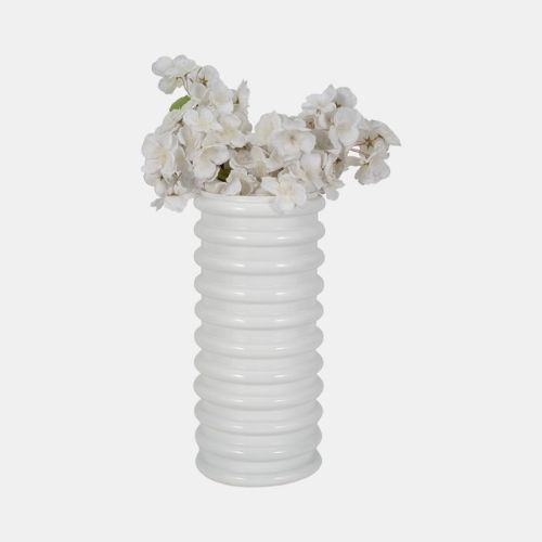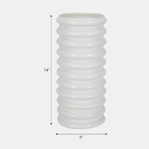Este hermoso jarr贸n de vidrio presenta una forma tradicional con un moderno dise帽o de vieira en un blanco sencillo. Agregue sus flores o vegetaci贸n favorita para crear un impresionante centro de mesa, o exh铆balo como un atractivo acento decorativo en cualquier mesa de caf茅, mostrador