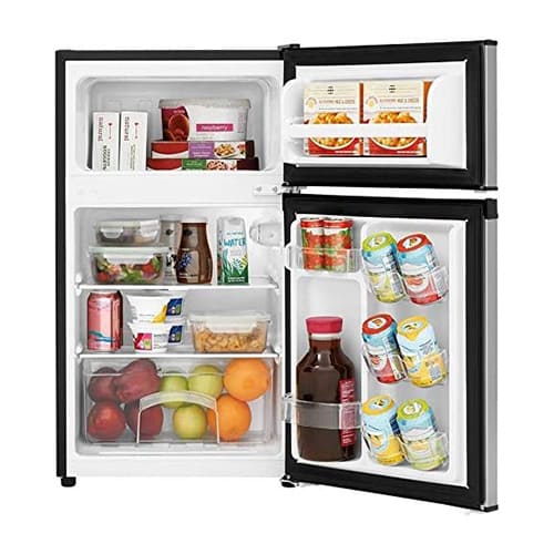 Características: Opción de apertura de puerta reversible; la puerta se puede instalar para abrir a la izquierda o a la derecha según tus necesidades. Soportes para latas de fácil acceso; aprovecha al máximo el espacio de tu refrigerador con nuestros soportes para latas de fácil acceso que ofrecen un acceso más rápido y más fácil que los dispensadores de latas para interiores tradicionales. Congelador de ancho completo; el verdadero congelador de ancho completo se enfría a -8 F e incluye un estante en la puerta del congelador para un almacenamiento máximo. Luz interior; la iluminación brillante hace que sea fácil ver lo que hay dentro. Cajón transparente para verduras; tus frutas y verduras se mantendrán más frescas con el cajón para verduras. Almacenamiento de botellas altas; el sistema optimizado de organización de puertas incluye almacenamiento de botellas altas que brinda espacio para artículos más altos, como botellas de 2 litros.