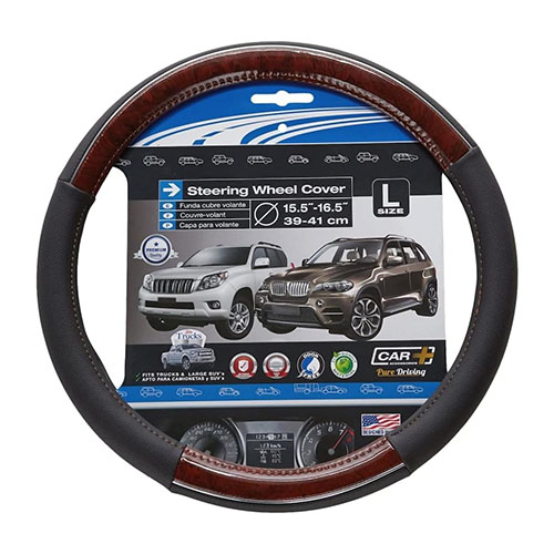 Funda para volante, color negro y grano de madera CAR+ (P505178).