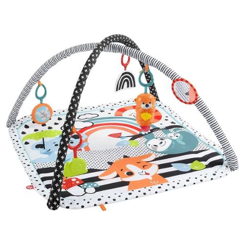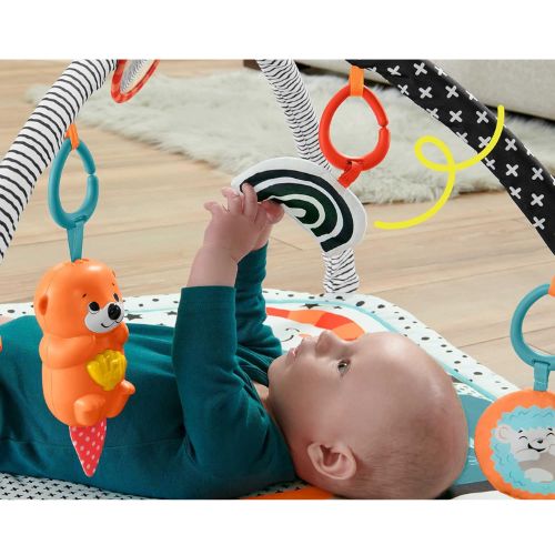 Incluye 5 juguetes de actividades: una nutria que emite música y luces con una suave colita, un espejo de autorreconocimiento, un sonajero blandito con forma de erizo, un caracol sin BPA para morder y un juguete de arcoíris de doble cara que cruje La nutria portátil reproduce hasta 15 minutos de música y luces divertidas Ver su propio reflejo en el espejo ayuda a los bebés a reconocerse y los personajes con caras grandes contribuyen a un buen desarrollo visual La gran mantita de juego de 76 x 76cm con colores de alto contraste se puede lavar a máquina para facilitar la limpieza