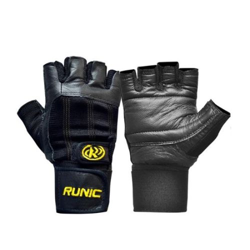 Guantes para pesas con muñequera Runic. La muñequera ajustable proporciona soporte y flexibilidad.