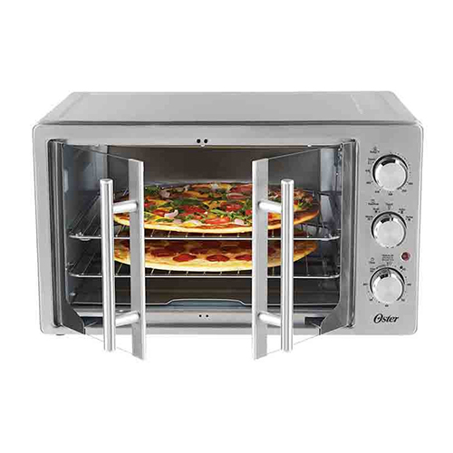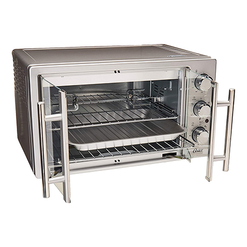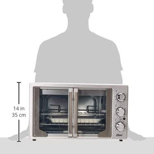 Nunca antes un horno de mesa ofrecía tanta facilidad para preparar pollos enteros, asados o recetas para una familia grande. Su doble puerta permite entrar y sacar las preparaciones sin ninguna dificultad. Y su asador para rostizar es ideal para preparar carnes y aves jugosas. Con solo abrir una puerta se abren ambas para facilidad y comodidad al entrar y sacar las preparaciones. 6 funciones preprogramadas para calentar, asar, tostar rápido, hornera, preparar pizza y rostizar, que ofrece versatilidad. Tecnología de horneado turbo por convección hace circular aire caliente por todo el horno para una cocción más rápida, y n dorado más parejo. Acabado contemporáneo en acero inoxidable cepillado que realza la cocina. Control de temperatura completamente ajustable de 90 °C a 230 °C (194 °F a 450 °F) para amplia variedad de usos. Facilita la preparación de comidas gracias a sus dos rejillas metálicas, dos posiciones para colocar las rejillas, capacidad para 42 litros, bandeja para hornear resistente y rejilla para asar. Util cronómetro de 60 minutos que apaga el hrono automática para mayor seguridad. Bandeja de hornear y rejilla duradera que funciona como una bandeja para dorar cuando se ensamblan juntas. Interior extra grande acomoda 2 pizas de 40 cm, pollos, asados y cazuelas tamaño familiar o 14 rebanadas de pan. Asador para rostizar para brindar mayor versatilidad.