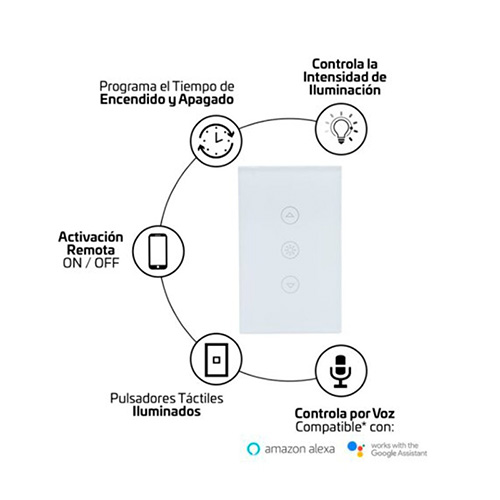 El Interruptor Inteligente Sencillo VTA Touch IoT Dimerizable Smart Home Wi-Fi es una solución avanzada para el control de la iluminación en tu hogar. Este interruptor inteligente te permite ajustar la intensidad de la luz de forma precisa a través de la aplicación VTA+ o por comandos de voz si está integrado con tu asistente de voz favorito – Además de brindarte un control completo sobre la iluminación, este interruptor te permite programar horarios y establecer ambientes personalizados según tus preferencias. Puedes crear un ambiente relajante y acogedor con luces tenues o aumentar la intensidad para actividades que requieren mayor luminosidad – Imagina poder ajustar la luz en tu sala de estar para crear un ambiente cálido y acogedor para una noche de película, o reducir la intensidad de las luces en tu dormitorio para disfrutar de un ambiente relajante antes de dormir. Con VTA Touch, todo esto es posible y más. Compatible para control con asistentes de voz – Acabados perfectos con materiales de alta resistencia – Voltaje de operación: 125 VAC 60Hz – Corriente máxima: 10 A – Potencia Máxima: 1000W – Eficiencia ≥90% – Frecuencia de transmisión y recepción inalámbrica: 2. 4 GHz-2484 GHz.