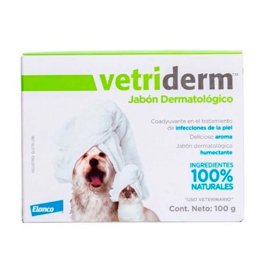 El Jabón Dermatológico Vetriderm formulado para el tratamiento de enfermedades dermatológicas en Perro y Gatos. La exclusiva formulación de Vetriderm Shampoo Dermatológico Sólido, representa un nuevo, poderoso y efectivo recurso para el Médico Veterinario, que enfrenta gran número de problemas de la piel en Perro y Gatos. Contiene ingredientes 100% naturales aloe vera, avena y manzanilla. Shampoo dermatológico sólido. Forma ergonómica, no se resbala. Coadyuvante en el tratamiento de infecciones de la piel. Controla la comezón. Ayuda a la cicatrización. Poder bactericida y fungicida. Efecto antipruriginoso. Queratolitico natural. Mayor sedosidad.