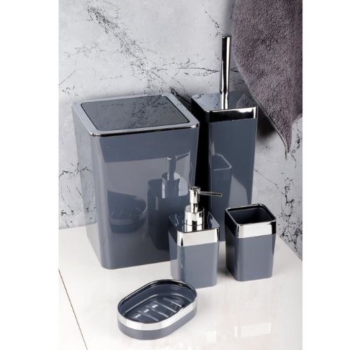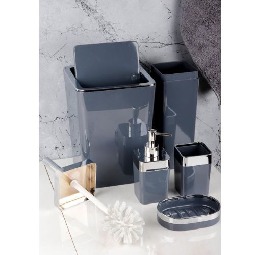 Incluye: Cubo de basura, escoba para baño, dispensador de jabón liquido, portacepillo, jabonera.
