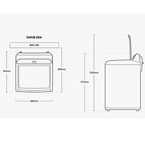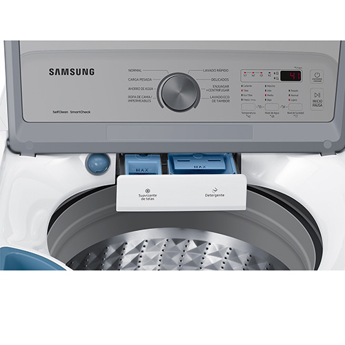 Puedes lavar muchas más prendas y mucho más grandes en un solo ciclo y ahorrar tiempo y esfuerzo. La enorme capacidad de la lavadora te permite usar una sola gran carga para prendas grandes, como un edredón extragrande, para que termines antes los lavados y disfrutes más tiempo para ti – Disfruta de un lavado de alta eficiencia y alto rendimiento con BubbleStorm™ que incluye tres funciones especiales – Ahorra energía y disfruta de una limpieza eficaz con la tecnología Digital Inverter, que crea corrientes de agua potentes – Ahorra tiempo enjuagando la ropa de manera eficiente. Cuando seleccionas la opción SuperSpeed, se rocían chorros potentes de agua en la ropa durante el enjuague, por lo que se elimina la espuma y el detergente de manera rápida y eficaz. Eso reduce el tiempo de lavado en comparación con un ciclo normal sin SuperSpeed – Evita que tu ropa se enrede y dañe y disfruta de un lavado más tranquilo. La forma y el tamaño especiales del ala del ActiveWave Agitator reducen el enredo de la ropa alrededor del pilar del agitador. También gira suave y eficientemente, por lo que produce menos vibración y ruido – Reduce el costo y las molestias de un electrodoméstico roto. Smart Check es un sistema automático de control de errores que puedes usar en cualquier momento y en cualquier lugar con una aplicación para teléfonos inteligentes. Detecta y diagnostica problemas y proporciona soluciones rápidas y sencillas – Mantén el interior de tu lavadora higiénicamente limpio y ahorra dinero. La función Self Clean elimina la suciedad y las bacterias que causan olores en el tambor. Utiliza una combinación de remojo, vibración y rotación de alta velocidad para mantener todo excepcionalmente limpio – ¡Ya no te asustarás con golpes inesperados! La tapa de cierre suave es segura, suave y silenciosa, ya que un amortiguador ralentiza automáticamente su movimiento. La ventana de vidrio templado te permite ver el proceso de lavado sin levantar la tapa. Además, es duradera y resistente, por lo que no se rayará ni dañará – Protege tus prendas para que no se dañen. El diseño exclusivo “soft curl” del tambor de diamante lava la ropa de manera realmente eficaz y, a su vez, la cuida. Sus lisas crestas en forma de diamante son suaves incluso para las prendas más delicadas. Además, los pequeños orificios de salida de agua evitan que la tela quede atrapada y se dañe – Controla tu lavadora de manera fácil e intuitiva. El panel de control posterior inclinado tiene una variedad de opciones, una pantalla digital y una rueda de desplazamiento que simplifica la selección de un ciclo. Al estar en la parte posterior de la máquina, los controles también son muy fáciles de ver y están protegidos de las salpicaduras de agua.