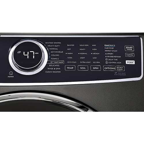 Nuestro sistema de lavado LuxCare® Plus ofrece una limpieza profunda con una distribución uniforme de detergente y aditivos, acciones de lavado mejoradas, control de temperatura y detección de carga inteligente. Elimine los residuos de detergente y las fragancias que pueden irritar la piel con Pure Rinse™, que enjuaga más limpio que nuestra opción de enjuague adicional sin usar más agua. Lavado rápido de 15 minutos; limpia en profundidad rápidamente los artículos que más necesitas. El primer Adaptive Dispenser™ del mundo diseñado para aceptar PODS®; obtenga la mejor limpieza sin importar el tipo de detergente que prefiera con Adaptive Dispenser™.