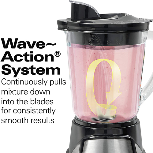 Revolucionario sistema de wave-action continuamente mezcla se coloca en las cuchillas para resultados suaves en todo time. 700-watt pico de potencia sin problemas de boquilla 3 tazas (tazón 2 velocidades Plus Pulse cuchillas de acero inoxidable. Batidora con chopper.