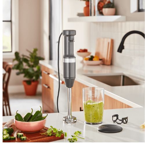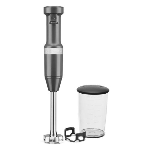 La Licuadora de inmersión KitchenAid cuenta con un brazo de mezcla de 8 pulgadas, con un diseño de acero inoxidable de 4 puntas, mezcla perfectamente todos los ingredientes. Gatillo de velocidad variable que te brinda mayor flexibilidad y control sobre tus recetas.