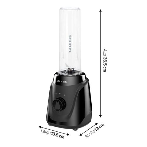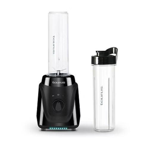 2 botellas 2GO! con tapa de 500 ml fabricadas en TritanTM from Eastman Libre de BPA Máxima transparencia Resistente a golpes, caídas, altas temperaturas y ácidos de los alimentos. Versátil y segura 500 W de potencia pico. 2 velocidades (1 continua + 1 pulso). Sistema de acople easy fit que asegura la posición del vaso alargando la vida del arrastre. Incluye 2 juegos de cuchillas de acero inoxidable desmontables