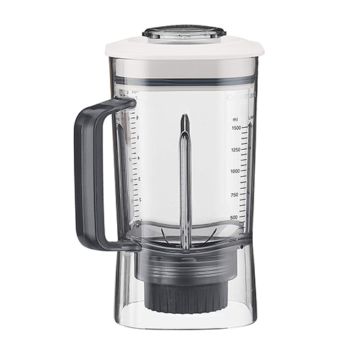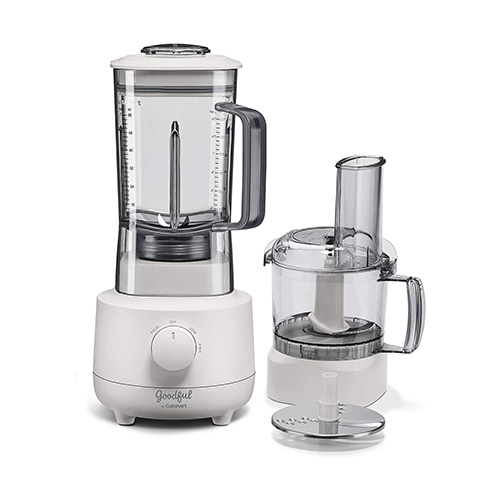 Con 700 vatios de combinación de potencia. Un procesador de alimentos de 3 tazas con tubo de alimentación, disco triturador y cuchilla picadora. Tarro de licuadora de 56 onzas de tamaño completo con ensamblaje de cuchillas de calidad comercial de 4 puntas. Cuenta con controles giratorios bajos; pulse, low y high. Acabado blanco mate con acentos grises.
