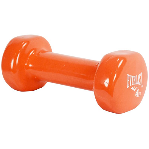 Mancuerna Everlast, modelo EVDD04 de 4 libras / 1 mancuerna, disponible en color naranja, hecha de material de hierro y recubierto de vinil y con un diseño de cabeza hexagonal.