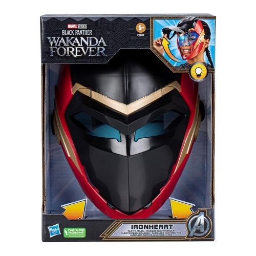 Usa la máscara cerrada o abre la placa frontal para activar la pantalla iluminada. Los niños de 5 años en adelante pueden imaginar que están preparados para la batalla como el indestructible y experto en tecnología Ironheart.