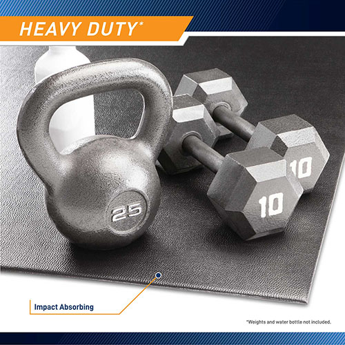 La alfombrilla Marcy Fitness Room Equipment protege tus suelos de los daños causados por los equipos del gimnasio, brindándote tranquilidad en tu entrenamiento – El MAT-366 está fabricado con un material de alta densidad que absorbe los impactos – Este artículo se puede utilizar en gimnasios domésticos, salas de juegos y talleres. La alfombra de ejercicios ayuda a eliminar el ruido y la vibración mientras protege los pisos de madera, los pisos de baldosas y las alfombras – Este artículo mantendrá su área de entrenamiento como nueva. Es ideal para cintas de correr, elípticas y bicicletas estáticas o reclinadas – La estructura de poliespuma de 1/4″ de alto impacto mide 36″ x 78″ y reduce los golpes y las sacudidas en las articulaciones/ligamentos – Reduzca el ruido y la vibración causados por las cintas de correr, los escaladores y los escaladores, además de brindar protección entre los equipos de ejercicios y la superficie dura.