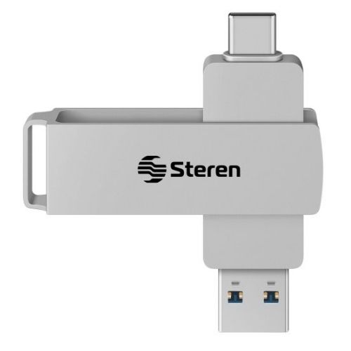 Tendrás una memoria USB C y una USB 3.0 fusionadas para transferir archivos a una gran variedad de equipos de cómputo y tablets o celulares con tecnología OTG. Guarda hasta 64 GB de imágenes, fotos, documentos, música y más. Copia y guarda archivos rápidamente y sin esperar. Tus datos estarán a salvo en esta memoria con carcasa de aluminio. Conectores USB C Y USB A. Capacidad de almacenamiento: 64 GB. Tecnología USB 3.0. Compatibilidad con tecnología OTG.