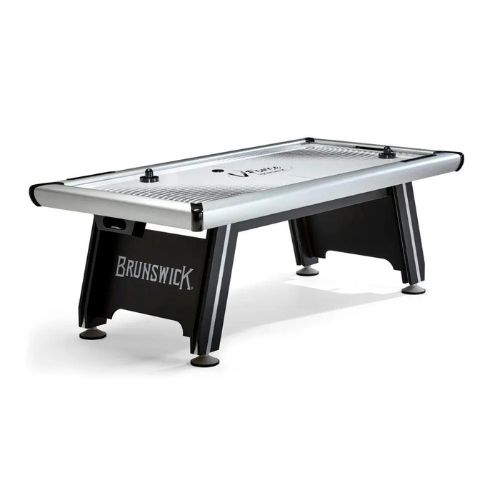 Los rieles de aluminio con esquinas metálicas con recubrimiento en polvo aceleran la acción. El “hielo” súper resbaladizo y resistente a los rayones ayuda a mantener la mesa con un aspecto impecable incluso después de horas de intensa competencia. Emocionantes gráficos y logotipo de mesa Motor soplador UL de flujo constante Niveladores de patas ajustables Puntuación de ábaco integrado Incluye dos mazos negros y cuatro discos.
