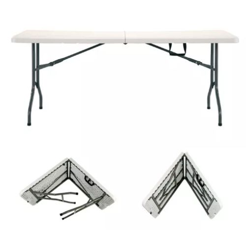 PMesa Plegable 1.80m, es perfecta para momento con la familia y amigos. Su diseño practico, cómodo y portátil es ideal para llevarla y traerla a cualquier parte Superficie rígida Fácil de armar, su instalación requiere pocos segundos. Mesa plegable para facilitar su transporte y resguardo.