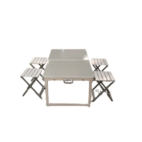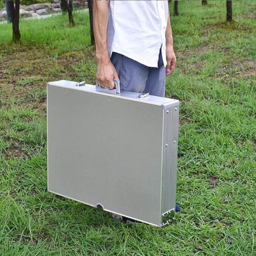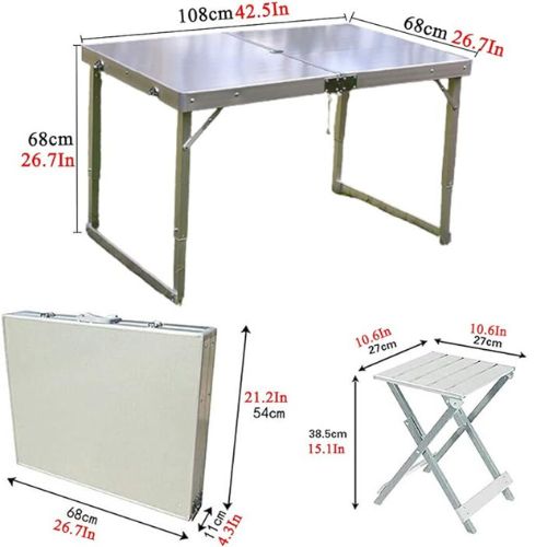 Juego de Mesa Y Sillas Plegables de Aluminio. Se puede instalar fácilmente en unos segundos. Despliéguelo rápidamente y llévelo con usted. Cuando no lo necesite, puede colocarlo en la esquina sin ocupar mucho espacio. El asa fácil de transportar se puede plegar y transportar rápidamente. Material de escritorio, impermeable, incombustible, no se oxida fácilmente, es fácil de cuidar. Material del marco: alta dureza, soporte de carga fuerte, no es fácil de abollar, deformar y durabilidad fuerte. Fácil de limpiar la parte superior de la mes